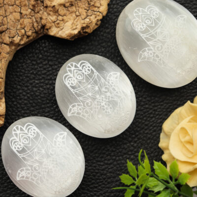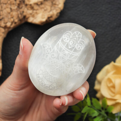 Selenite Hamsa Hand Palm Stone