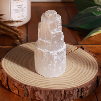 The Selenite Natural Candle Holder for Cleansing and Decor.